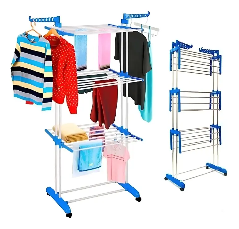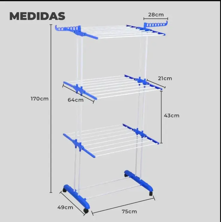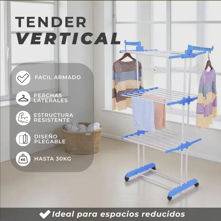 Organizá y secá tu ropa de manera eficiente con el tendedero vertical de 3 niveles, ideal para aprovechar al máximo cada rincón de tu hogar. Su estructura de polipropileno reforzado garantiza resistencia y durabilidad, mientras que su diseño ergonómico y plegable lo convierte en la opción perfecta para espacios reducidos.